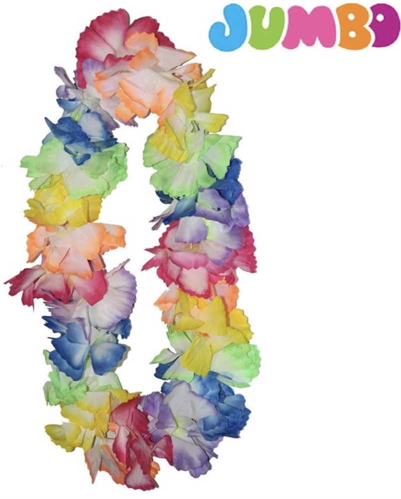 Bring island vibes to any costume with this Two‑Tone Jumbo Hawaiian Flower Lei. Packed with 48 oversized two‑tone blooms (about 10cm each), this one-size accessory slips on in seconds and adds instant colour and volume to luau nights, tropical parties and fancy dress. Perfect for adults wanting a bold, playful finish — branded Jumbo for consistent quality.