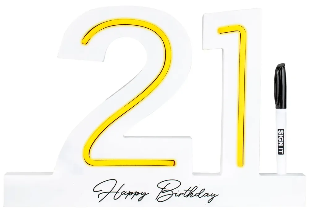 Light up a 21st birthday celebration with this stunning White Neon LED Signature Block. This eye-catching number 21 shaped block features built-in LED neon lighting that creates a beautiful glow effect.