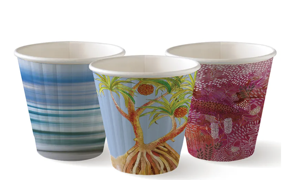 Brightly patterned and built for busy service, the 295ml Art Series Double Wall BioCup puts a stylish twist on takeaway drinks. One size (295ml / 8oz) with a 90mm rim, it’s ideal for cafés, events or market stalls where design matters as much as function. The double-wall construction keeps hands comfortable while showcasing unique artist prints — great for hot or cold serves.