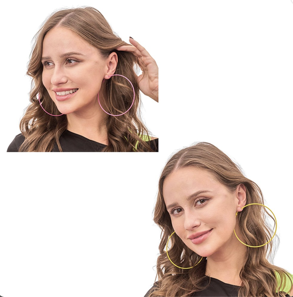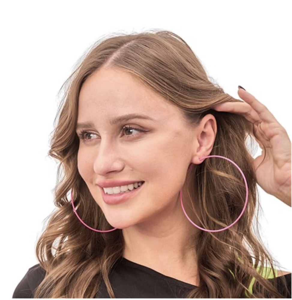 Make a bold, retro statement with these classic 80's hoop earrings — oversized, colourful and impossible to ignore. One size (9cm diameter) makes them an effortless fit for most adults and they instantly lift any 80s-inspired outfit, club look or Halloween costume. Ideal for fancy dress nights and retro parties; ask about pickup in Perth if you need them today.