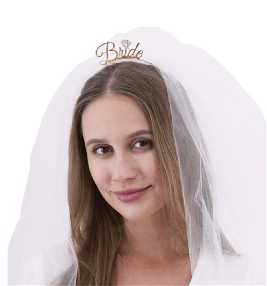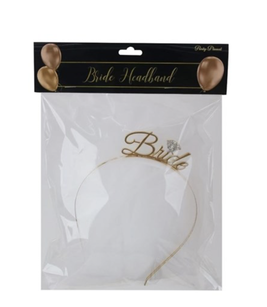 Stand out at a hens night or bridal shower with this Bride Headband With Veil. One size fits most adults and the lightweight headband secures a soft white veil behind a gold "Bride" script topper for instant photo-ready fun. Ideal for bachelorette parties or last-night celebrations — available for pickup in Perth or shipping across Australia.