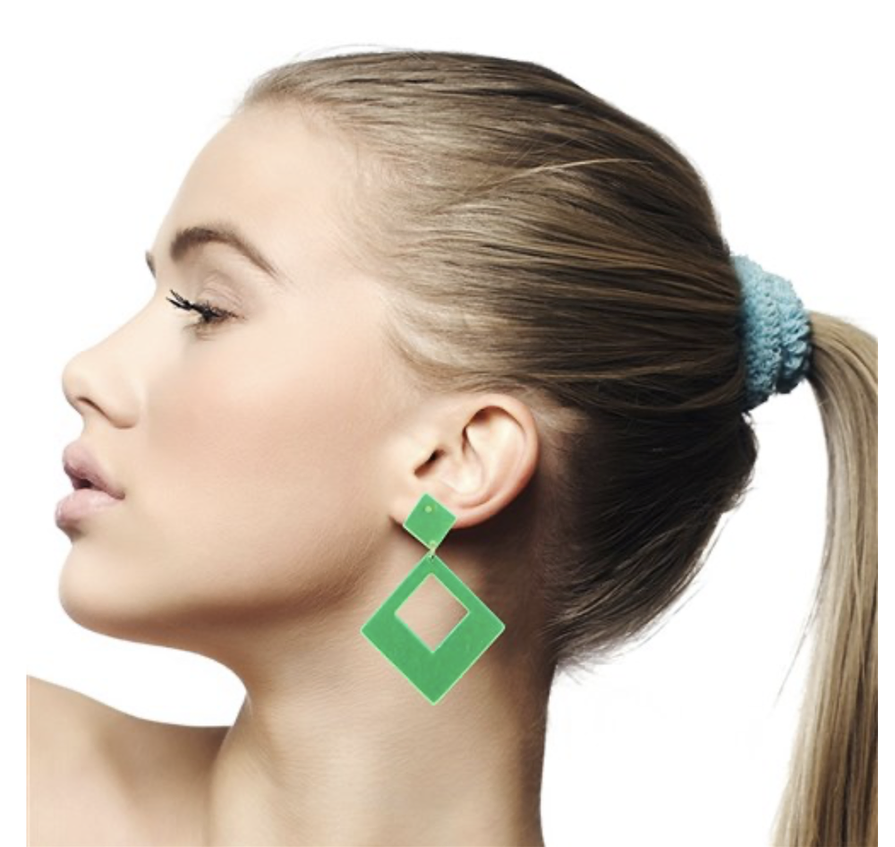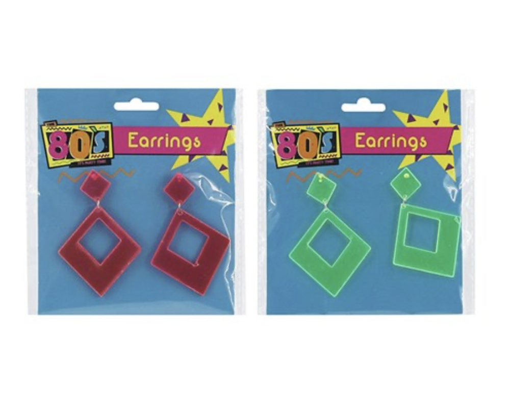 Stand out in a swirl of neon with these 80s Geometric Earrings — bold pink and yellow square drops with a smaller square stud and cut-out centre that sway as you move. Perfect for 80s parties and retro-themed nights, they come as a pair (2) and are One Size, designed for adult earlobes and comfortable enough for all-night wear.