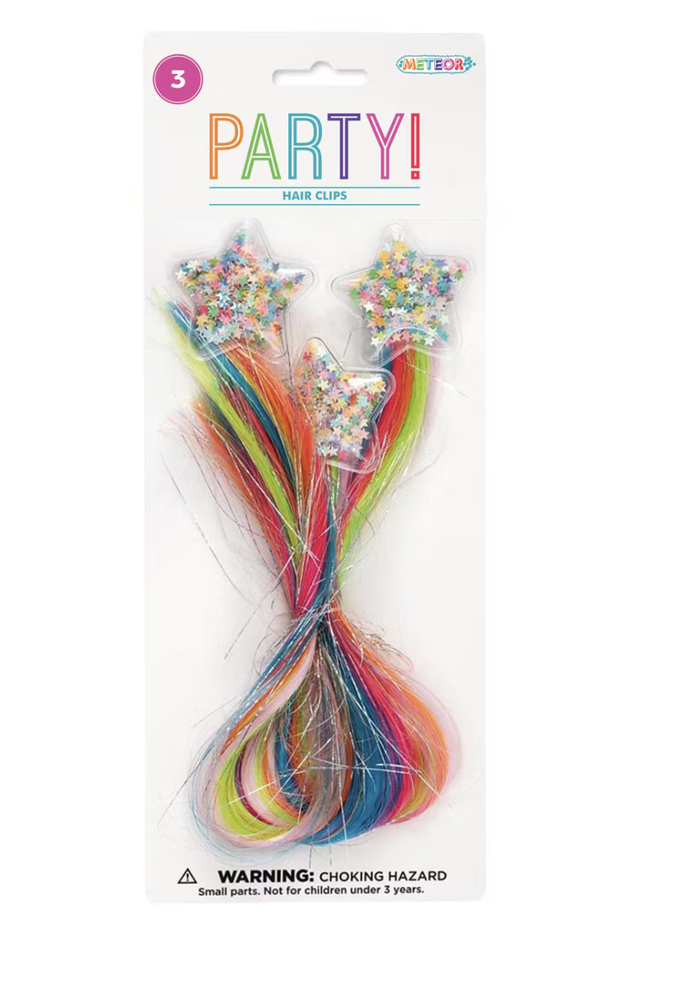 • Includes: 3 hair clips with star toppers and rainbow tinsel strands