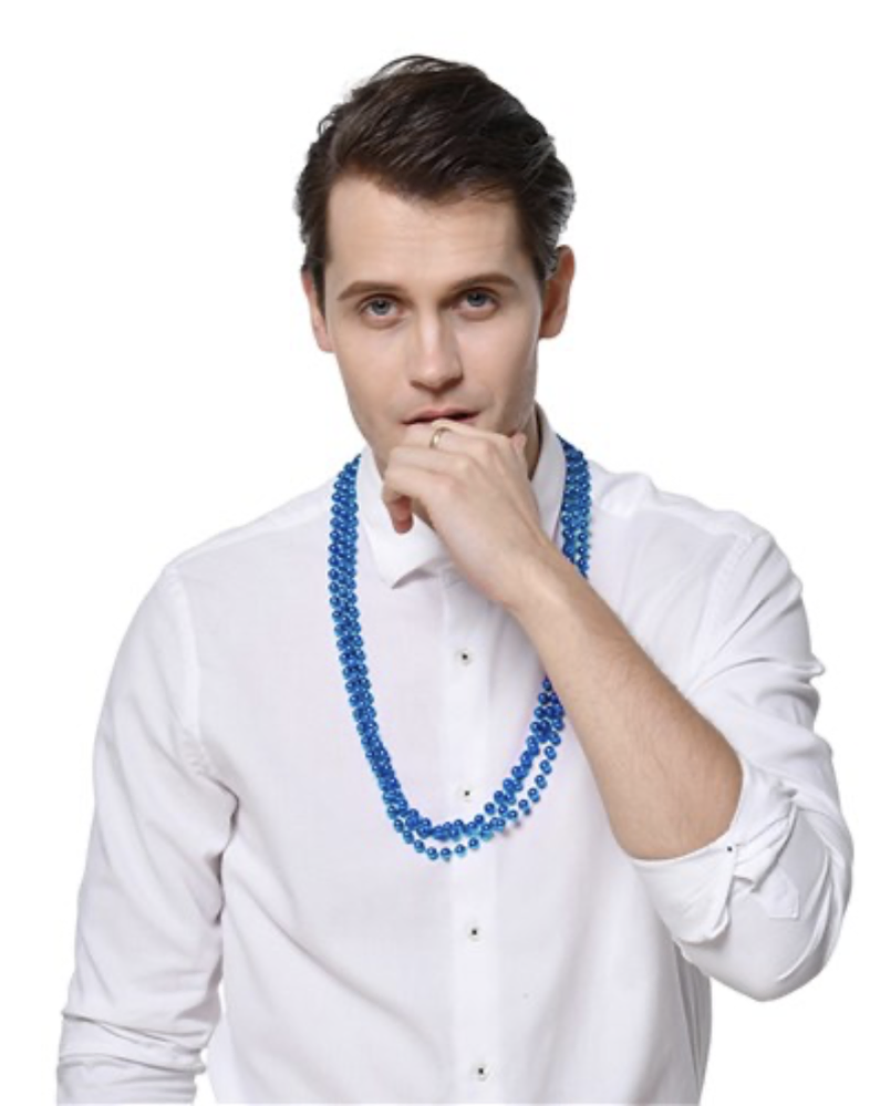 Add instant colour to your next celebration with this 3-pack of shiny blue party bead necklaces. Each necklace is approximately 80 cm long for a noticeable double-drape — one size fits most adults and teens. Handy as party bag fillers or quick costume accents, the three-pack makes it simple to share around at bucks nights, hen's nights, Mardi Gras or game-day events.