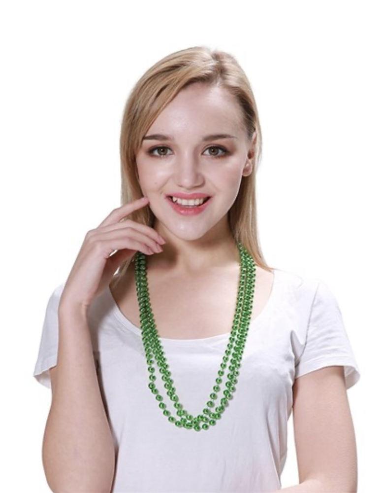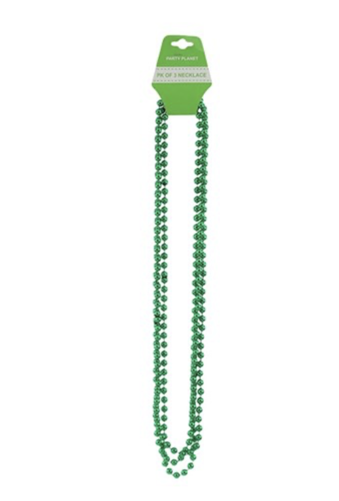 Make any celebration instantly brighter with this 3-pack of shiny green party bead necklaces. Ideal for St Patrick's Day, school spirit events or last-minute costume add-ons, each necklace is one size (approx. 80cm) so it drapes low on adults and kids alike. Lightweight plastic beads sit comfortably all night — available in store for pickup in Perth.