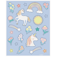Add a sprinkle of magic with these pastel Unicorn Sticker Sheets — perfect for kids' craft time, school rewards and party bags. This One size pack contains 4 sheets with 92 stickers in total, featuring playful unicorns, rainbows, stars and florals that stand out on notebooks, lunchboxes or gift tags. Available for pickup in Perth.