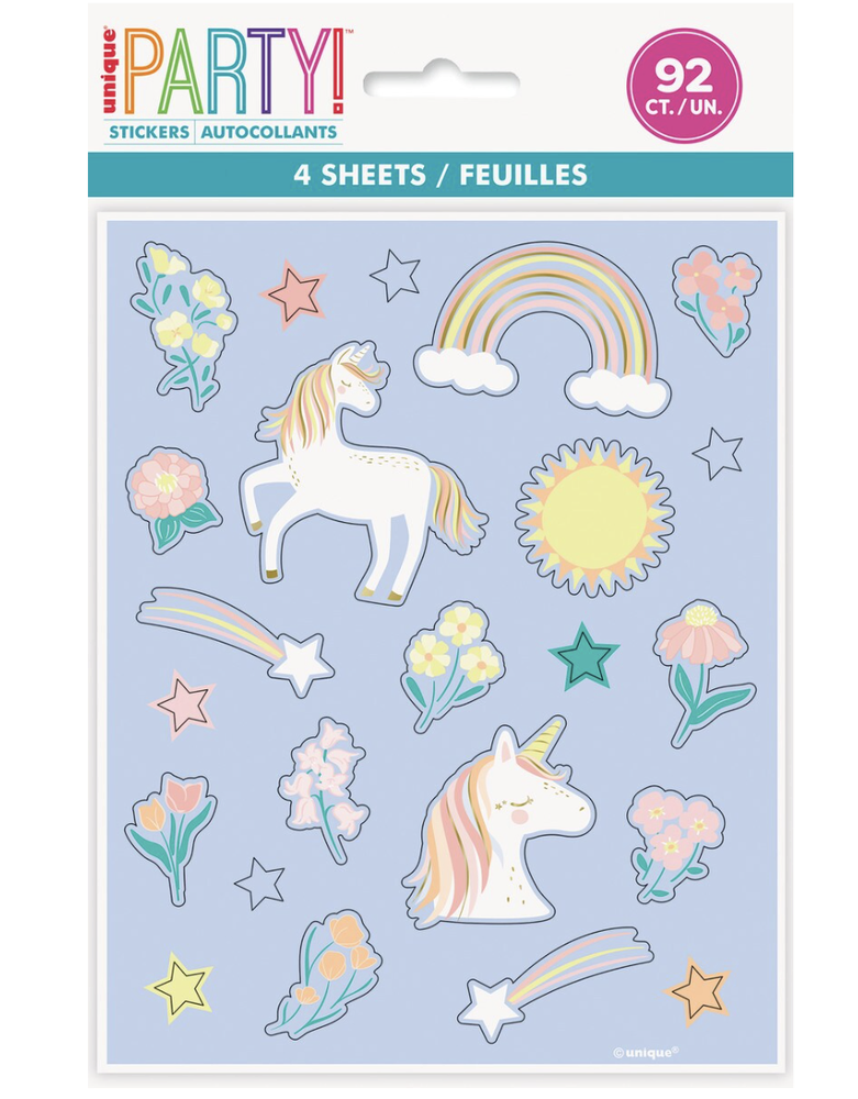 Unicorn Sticker Sheets –Pk4