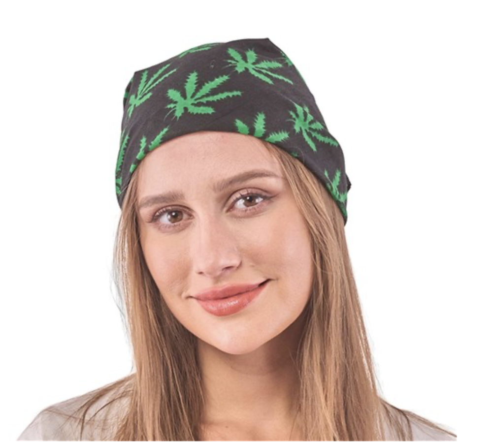 Turn heads with this bold marijuana-leaf bandana — a striking black bandana printed with vivid green cannabis leaves that’s perfect for festival looks, themed parties or casual street style. One size (approx. 50cm) fits most adults and can be worn as a headscarf, neckerchief or face covering for costume nights. Lightweight and easy to pack for events and weekends away.