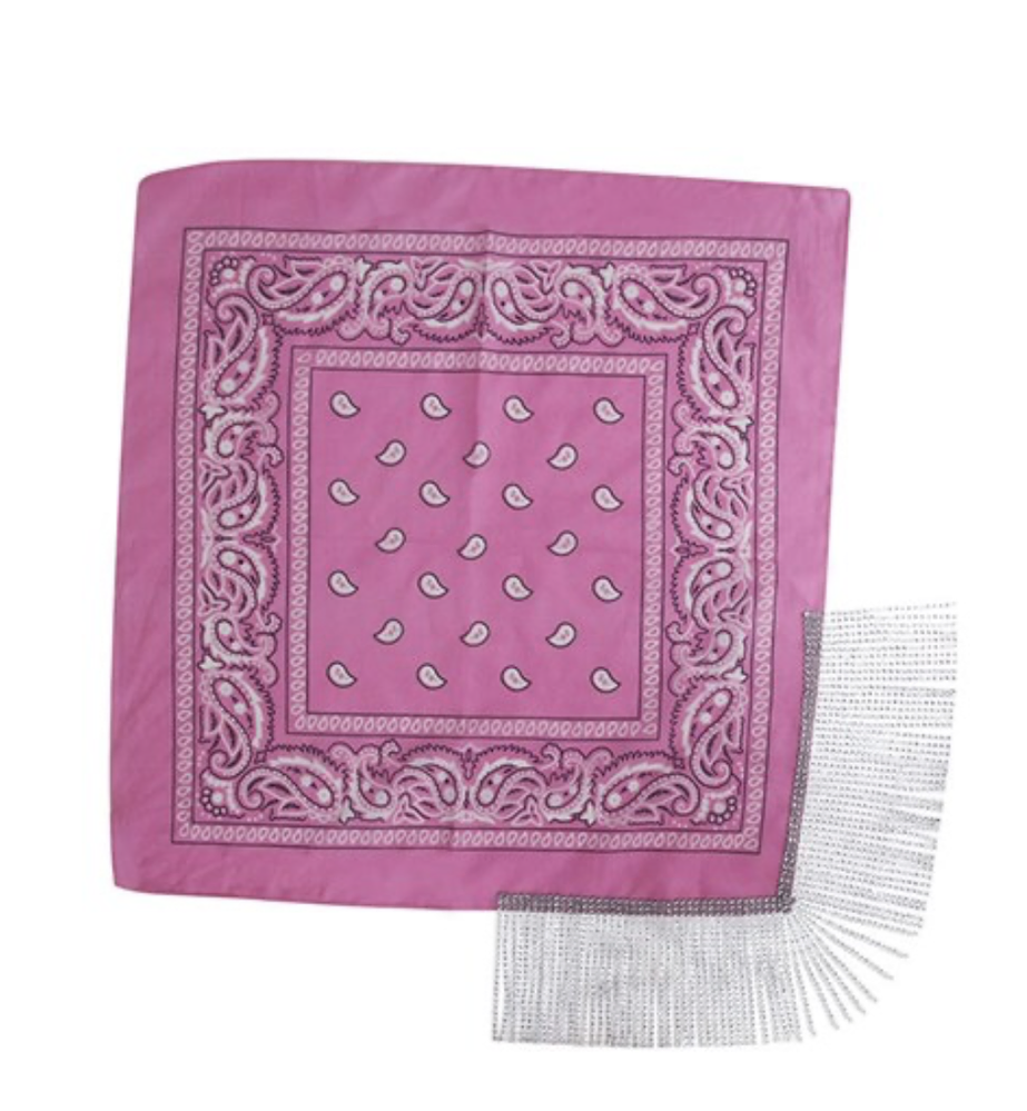 Pink Bandana with Silver Rhinestone Fringe