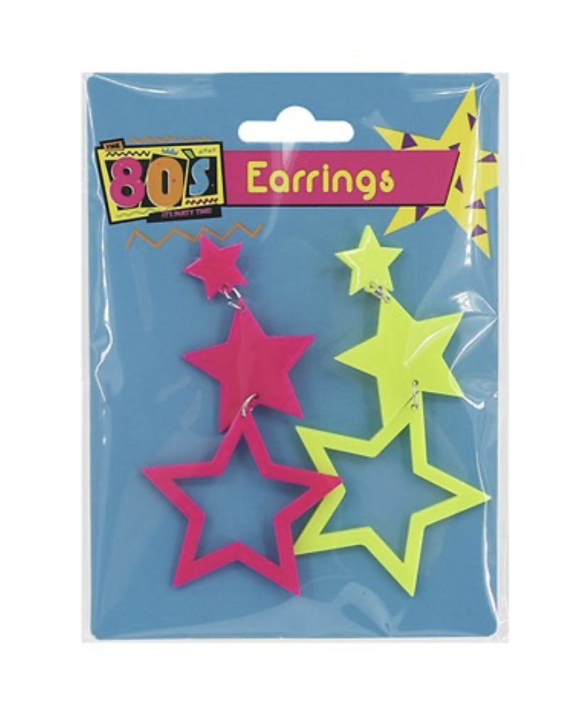 Turn heads with these bold 80's Star Earrings — oversized neon star drops that scream retro fun. One size fits all and they come as one pair, perfect for 80s-themed parties, retro nights or Halloween. Lightweight and eye-catching, they lift any fluorescent outfit or big-hair look. Available for pickup in Perth.