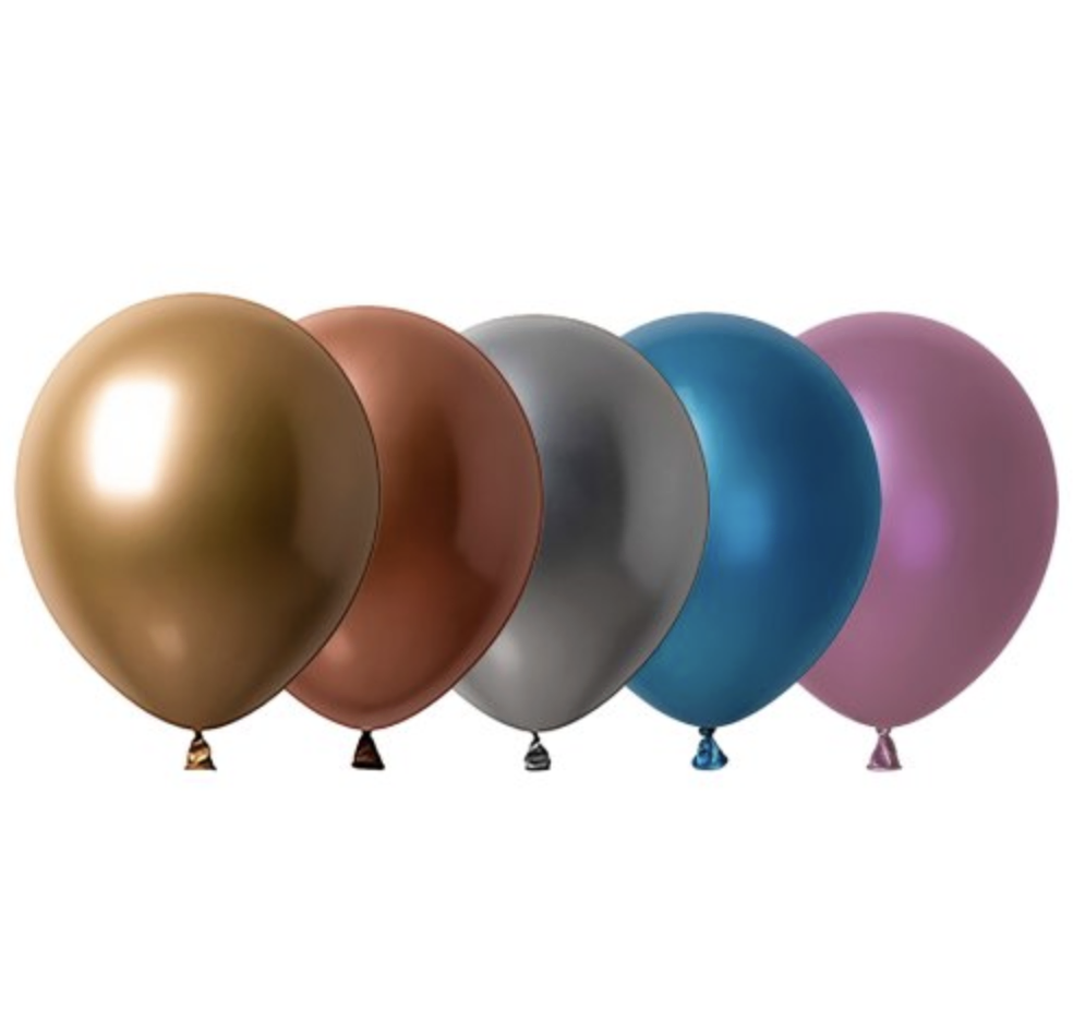 • Includes: 25 x 12cm metallic chrome latex balloons (assorted colours)
