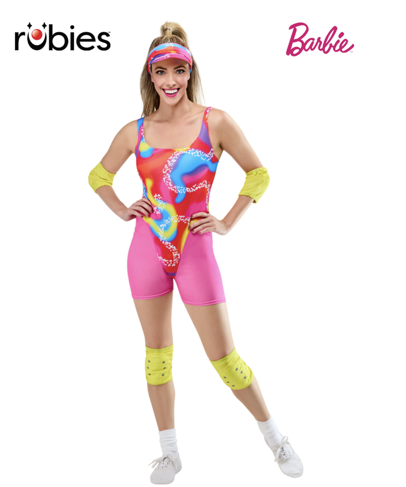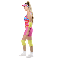 Bring 80s roller-disco glamour to the party with this bright Rollerskate Barbie costume. The high-cut, fitted one-piece features a neon swirl bodice and pink short-style bottom with matching visor and padding for the authentic look. Designed to be worn as a close-fitting, it’s perfect for Halloween or any retro/fancy-dress night out.