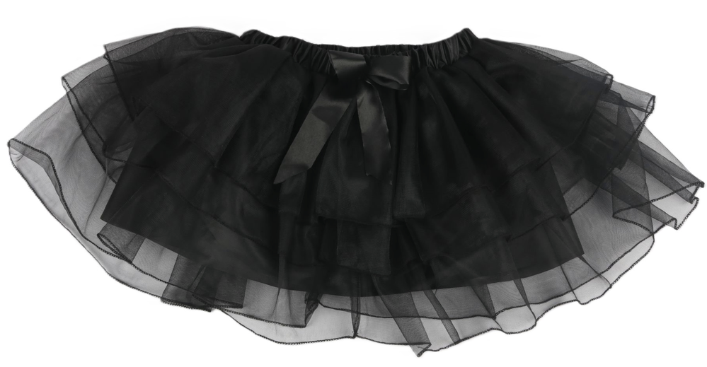 Turn heads at parties or on stage with this Black Deluxe Tutu — a voluminous, layered tulle skirt that adds instant drama to any costume. One size fits most adults thanks to an elasticated waistband and a neat satin bow at the front for a flattering finish. Ideal for Halloween, dance recitals or a playful night out; style with boots or tights.