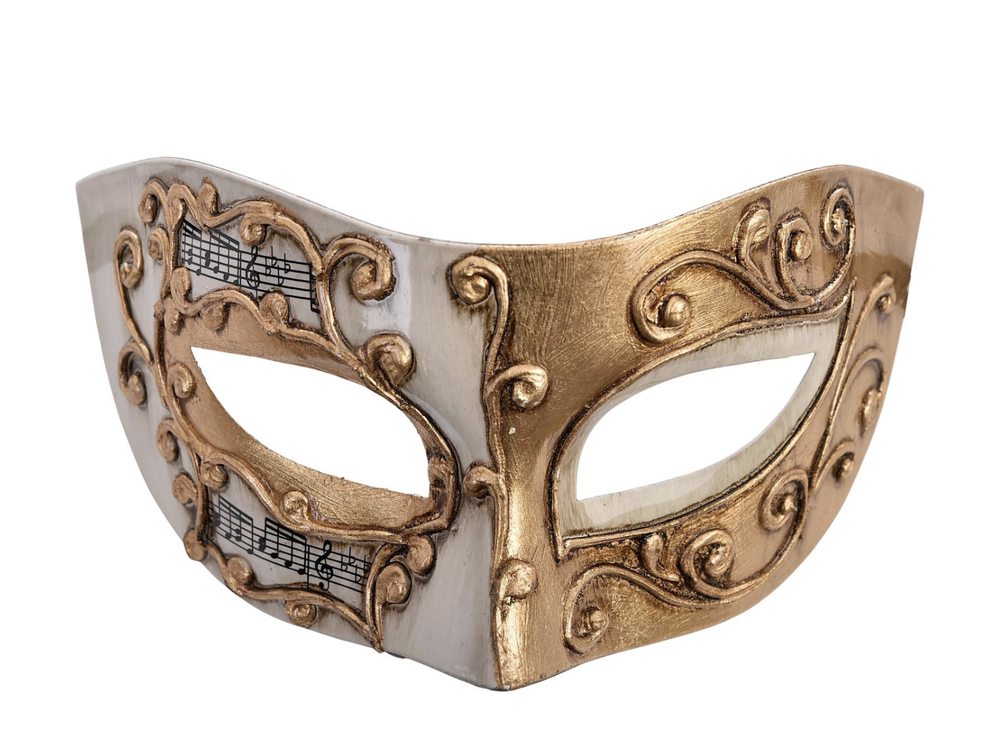 Step into a world of intrigue with this cream and gold Masquerade Eye Mask. The sculpted resin design features antique-gold scrollwork and printed musical stave panels that catch the light while keeping identity a tantalising secret. One size fits most adults; perfect for masquerade balls, Mardi Gras or Halloween parties. Available for pickup in Perth.