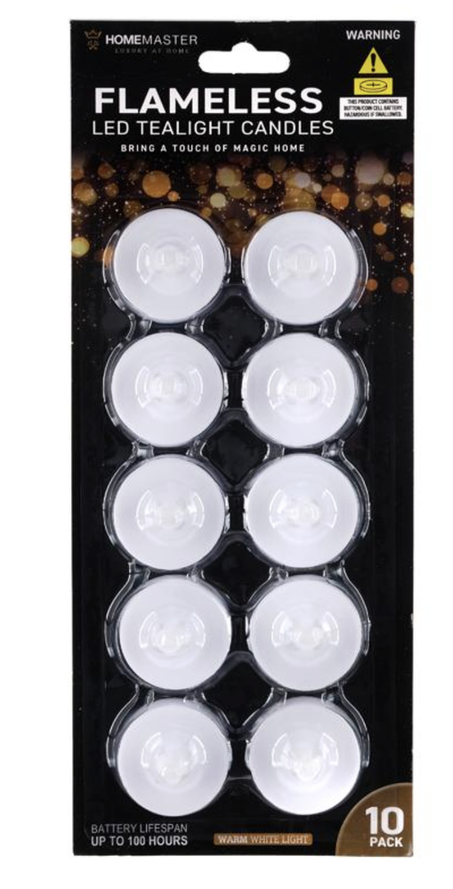 • Includes: 10 x flameless LED tealights (38 x 35mm) with button batteries