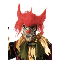 • Includes: Jacket/top, trousers, skull clown mask with attached red wig