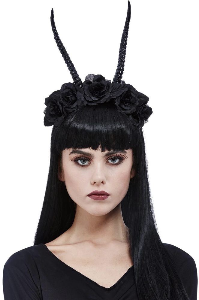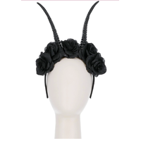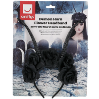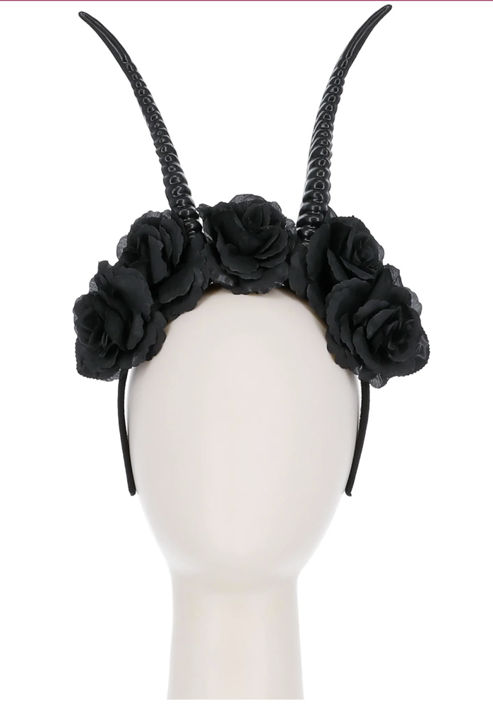 Make a dark, dramatic entrance with this Demon Horn Flower Headband — a crown of black roses topped with two tall, textured horns. One size fits most adults and teens, sitting comfortably for hours while you craft a witch, demon or gothic fairy look. Perfect for Halloween and themed parties; pickup in Perth available for local shoppers.