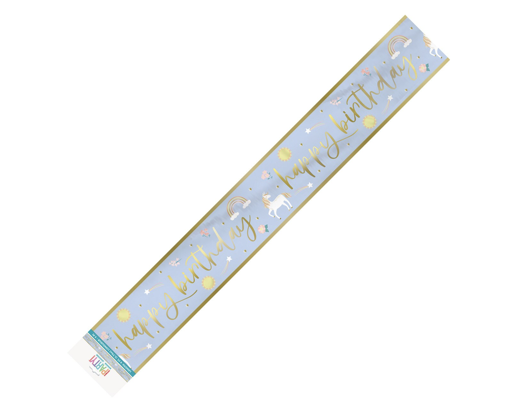 Transform your party venue into a whimsical wonderland with the Dainty Unicorn Happy Birthday Foil Banner. Stretching 2.74 metres, this enchanting banner sets the perfect scene for magical birthday celebrations. Ideal for unicorn-themed parties.