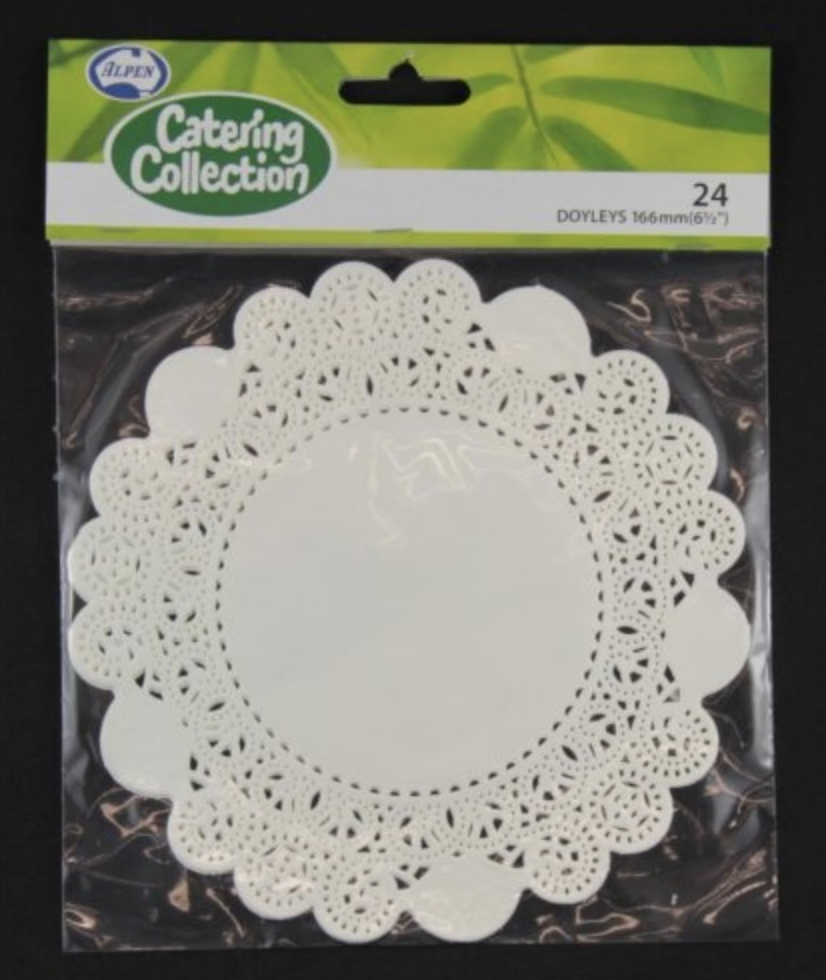 Add delicate vintage charm and neat presentation to cakes, pastries and savoury platters with this pack of 24 white paper doyley, ideal for lining trays, separating layers or creating a lace-like backdrop for sweet treats. Each 16.6 cm disc features a decorative punch-cut lace edge that sits under individual servings or centre displays to brighten table settings at teas, buffets and casual functions; they also pair neatly with cake boards, plates and dessert stands and work well under cupcakes, slices or biscuits, and the disposable, food-safe design makes clearing up quick and presentation effortless for home bakers and caterers.