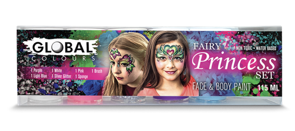 Sparkle into character with this Fairy Princess face & body paint kit — perfect for kids who love a touch of magic. The water‑based, non‑toxic paints and silver glitter create vibrant, shimmered designs that wash off easily. One size kit is ideal for Book Week or Halloween, with everything needed to paint princess looks; available for pickup in Perth.