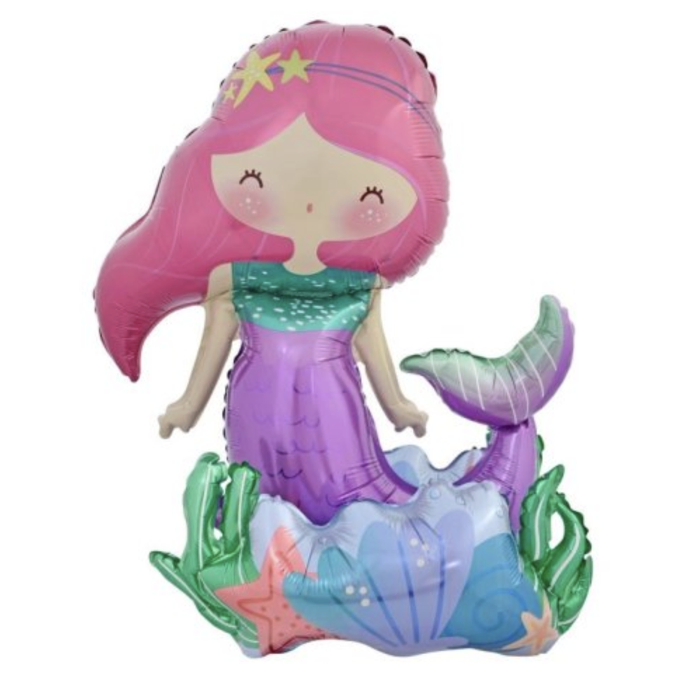 Make a splash with this charming foil mermaid — a sweet, pink‑haired sea sprite that brings instant colour and fun to any kids' party. This one size, air‑filled figure stands as a freestanding decorative prop for birthdays and under‑the‑sea themes. Light to move and simple to set up, it’s a great last‑minute décor boost for events in Perth or delivery to your venue.