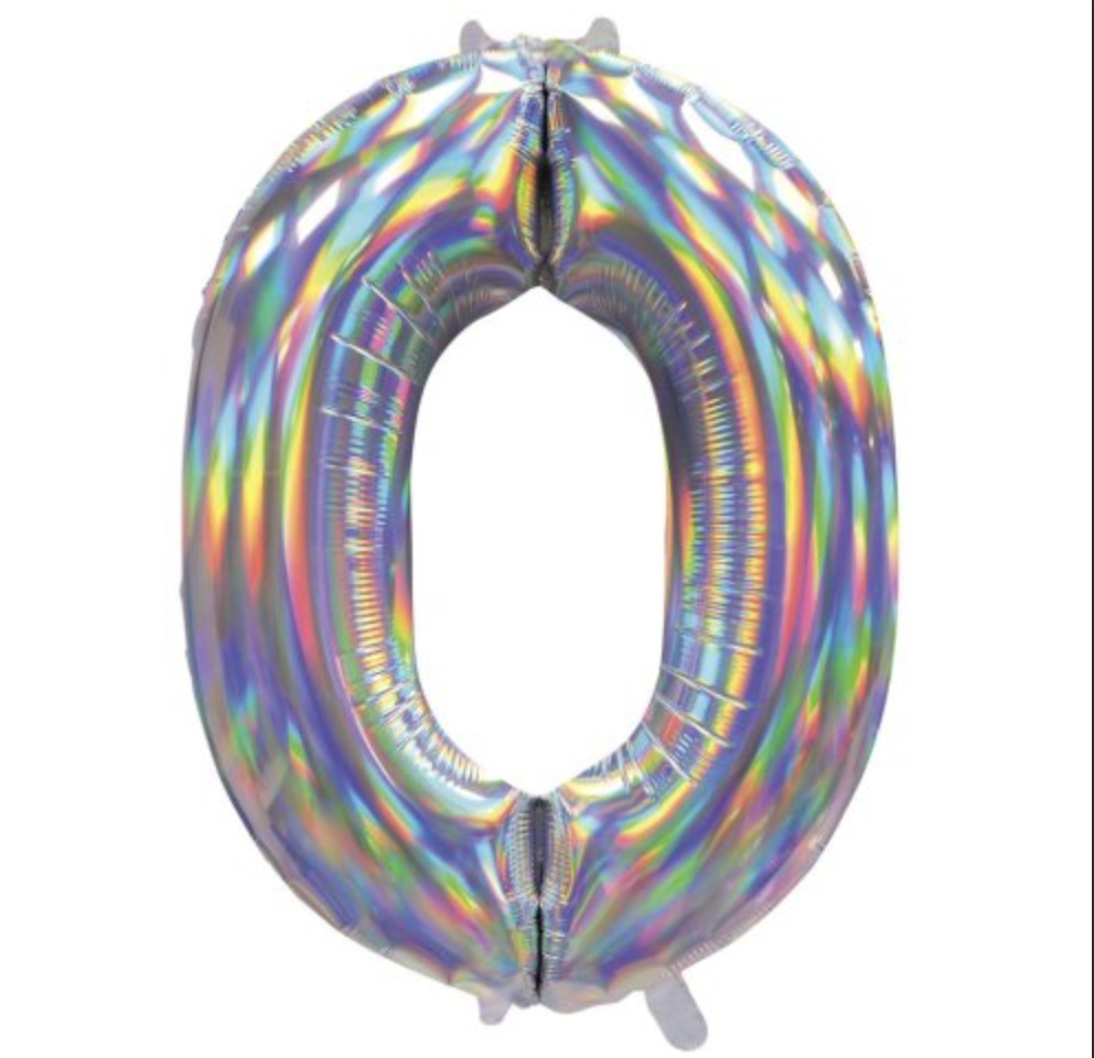 Iridescent Silver Foil Balloon Number 0 (86 cm)