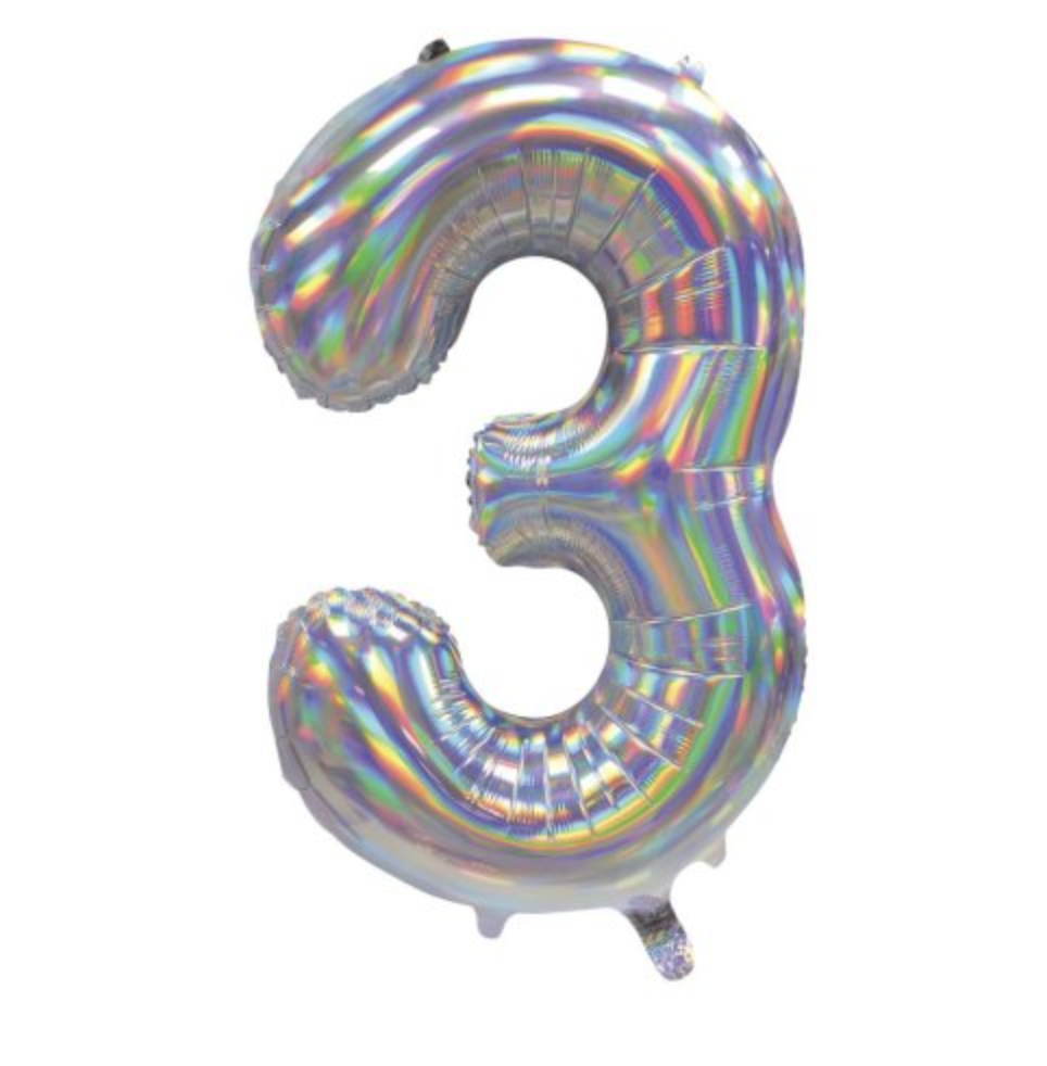 Iridescent Silver Number 3 Foil Balloon (86 cm)