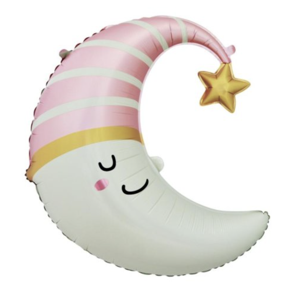 Add a dreamy, whimsical touch to parties and nurseries with this Pink Moon 71cm Crescent Foil Balloon. The soft pink-striped moon with a shiny gold star and sleepy-face print will stand out above cakes and gift tables — sold individually and One Size (71cm). Perfect for baby showers, kids' birthdays or to brighten a room. Pickup in Perth available.
