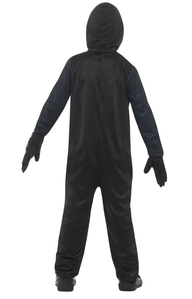 • Includes: Hooded jumpsuit with all‑over glow‑in‑the‑dark skeleton print, matching gloves