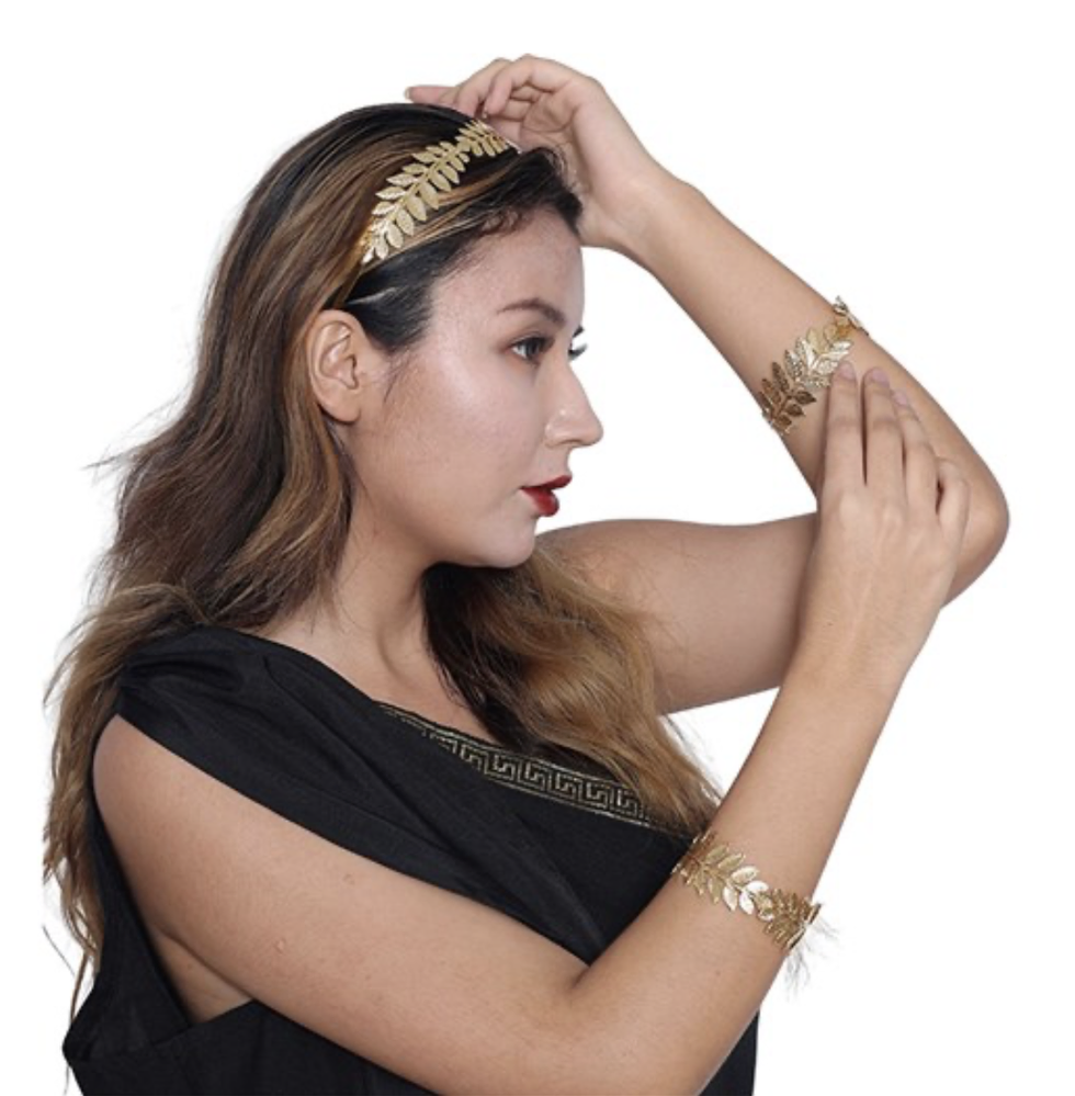• Includes: Gold leaf headband crown and two matching leaf bracelets