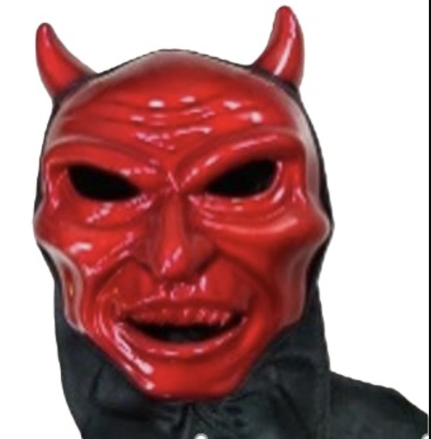 • Includes: Red horned mask with attached black neck covering (one size — fits most adults)