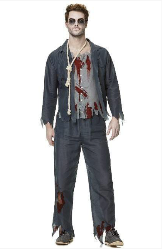 Command the room this Halloween with our Hangman Costume — a grim, cinematic take on the classic executioner look turned undead. The distressed grey jacket and torn, blood-streaked shirt pair with matching trousers and a rope noose to create a standout silhouette. Available for Pickup in Perth or shipping Australia-wide.