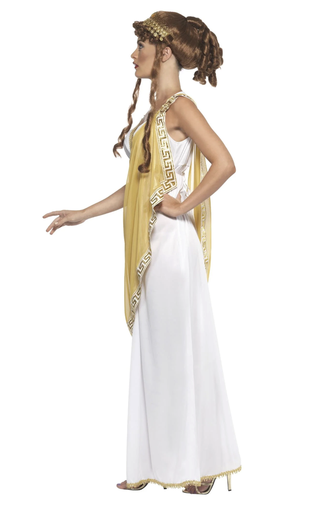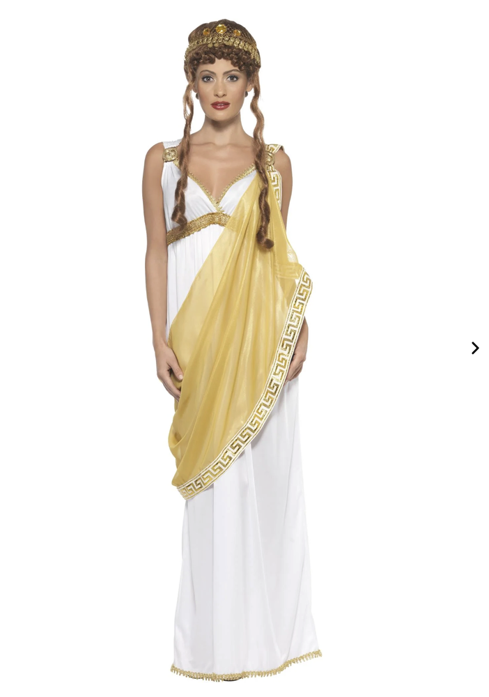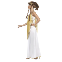 Channel the legendary beauty of classical Greece in this Helen of Troy costume — a flowing white gown trimmed in gold with a draped gold sash for dramatic silhouette. Perfect for Book Week or a striking Halloween look, the outfit will make you the centre of attention at any themed party or school event.