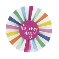 Make the birthday person pop with this colourful "It's My Day" rosette badge — perfect for parties, cake-cutting and photo ops. The bright multi‑colour pleated rosette and bold pink centre mean everyone knows who's celebrating. One size fits most; easy to pin onto shirts, dresses or jackets. Available for pickup in Perth for same‑day collection.