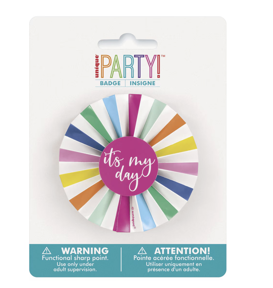 • Includes: One rosette-style pin badge with printed "it's my day" centre