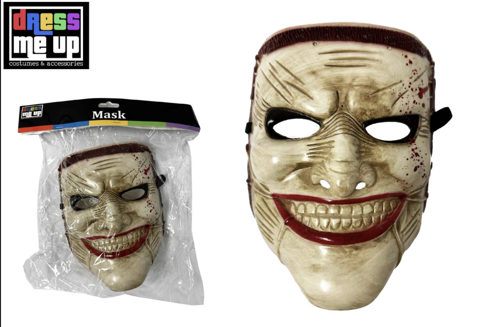 Turn heads this Halloween with this sinister Joker Mask — a contorted, aged-face design with a wide, blood-speckled grin that catches the light in a creepy, cinematic way. Sold individually in one size that fits most adults and teens, the lightweight moulded plastic mask secures with an elastic strap for easy wear. Available for pickup in Perth or shipping Australia-wide.
