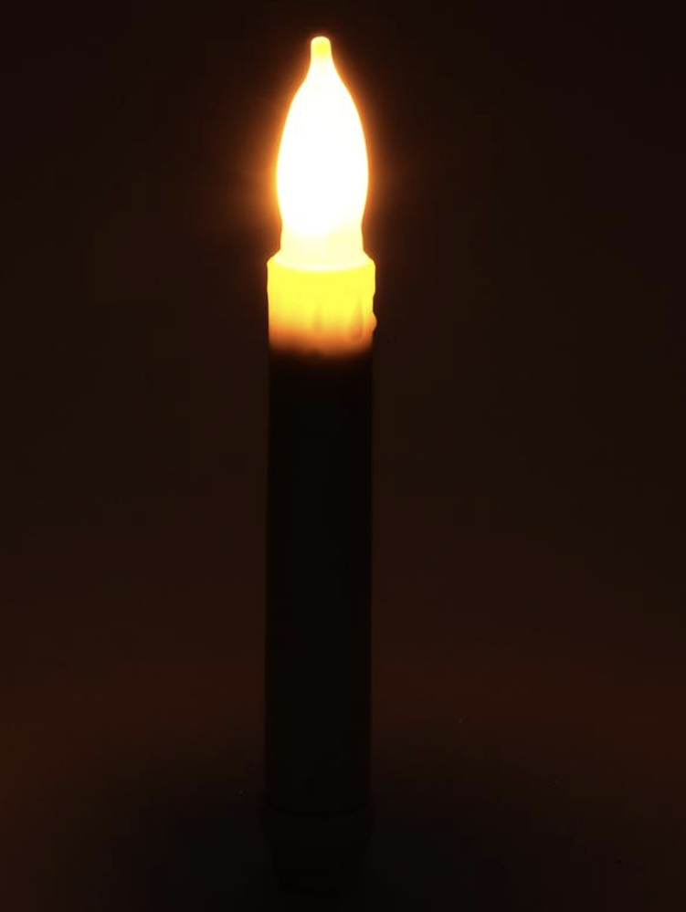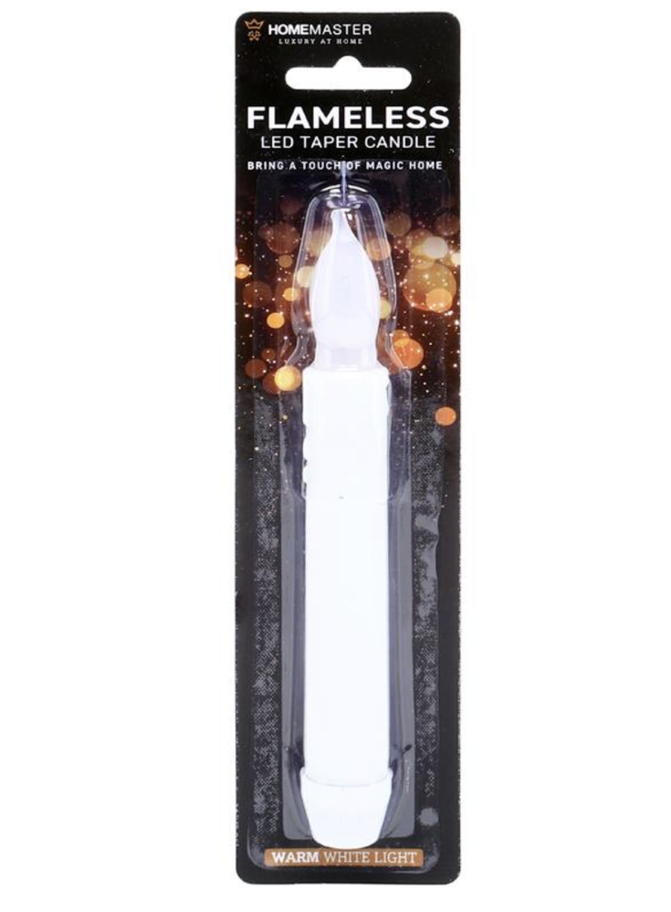 Bring warm candlelight to any space without the worry of an open flame with this 16cm LED flameless taper candle. The warm-white flickering LED recreates a realistic glow for tables, mantelpieces and seasonal displays — ideal for Halloween or Christmas ambience. One size (16cm); battery-operated using 2 x AA (not included) for easy, long-lasting use.
