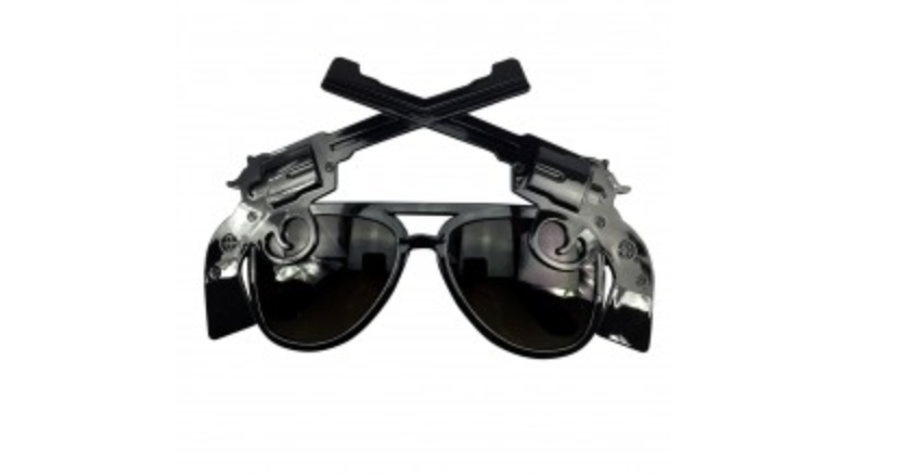 • Includes: Aviator-style sunglasses with crossed toy revolver detail