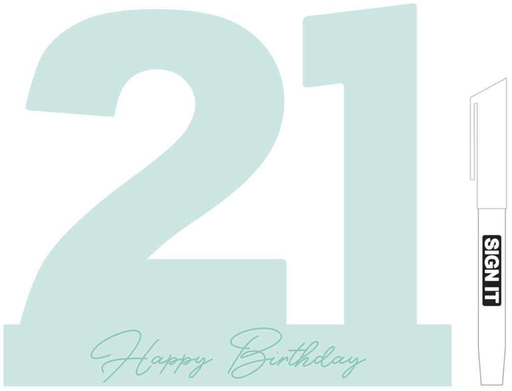 • Includes: One minty-green number 21 signature block (mini) and Sign-It marker