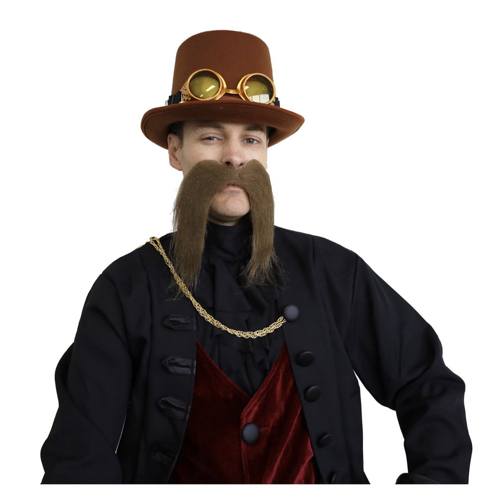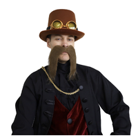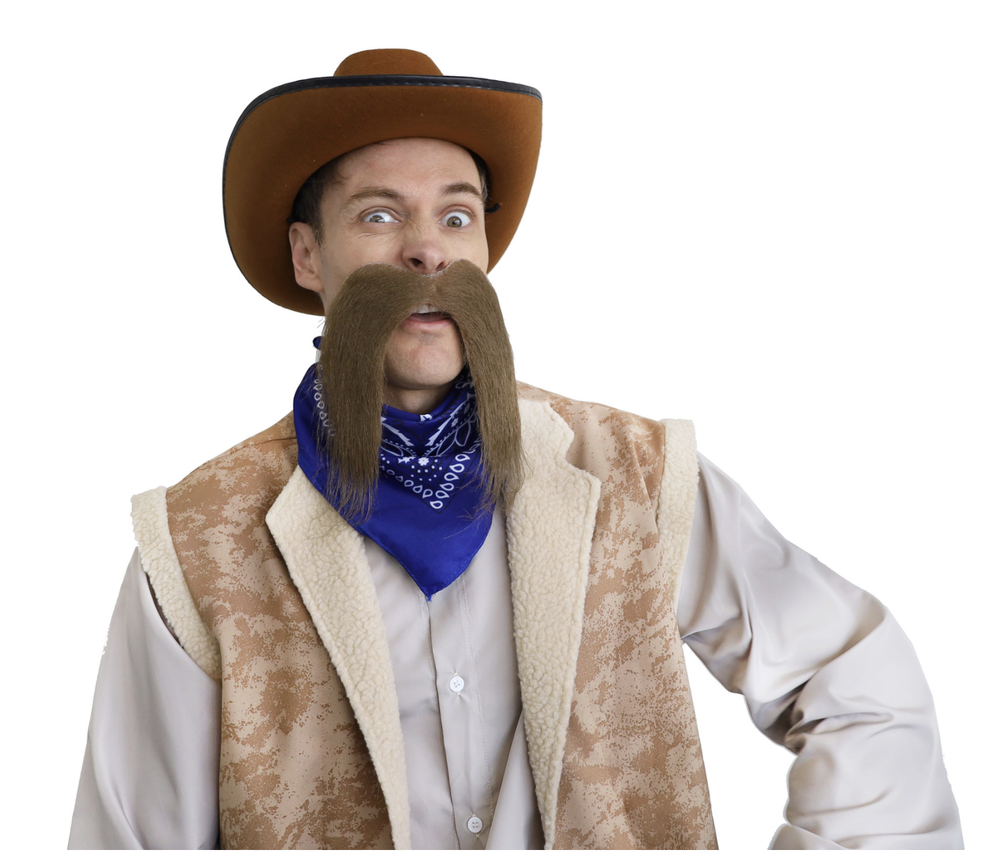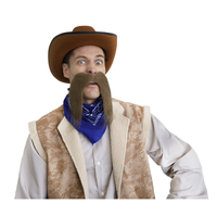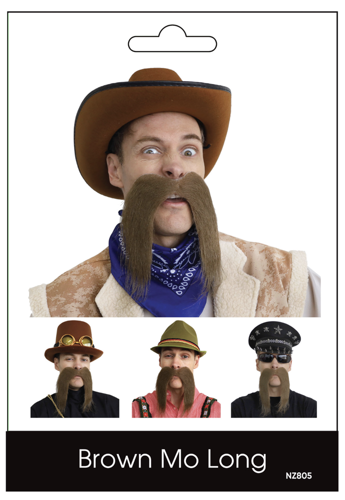 Get noticed with this bold brown Mo moustache — a long, full handlebar that droops past the lip for instant character. One size fits most adults and teens and the thick synthetic fibres give a realistic look perfect for cowboys, Bavarian outfits or a cheeky Halloween and Oktoberfest costume. Available for pickup in Perth.