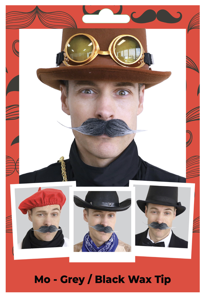 Add instant character with the Mo grey moustache — a distinctive wax-tip style that curls at the ends for an old‑world or Steampunk vibe. One size fits most; a single piece is supplied so it’s ready to finish off any look. Perfect for Halloween, theatre and fancy dress when a bold facial feature completes your costume.