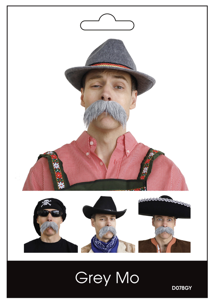 Add instant character with this bushy grey "Mo" moustache — perfect for transforming into a gruff grandad, Bavarian oompah or a quick Halloween disguise. One size (Large) fits most adults and sits naturally under the nose for a believable look. Easy to pair with hats or lederhosen for Oktoberfest, stage roles, fancy-dress or last-minute costume ideas.
