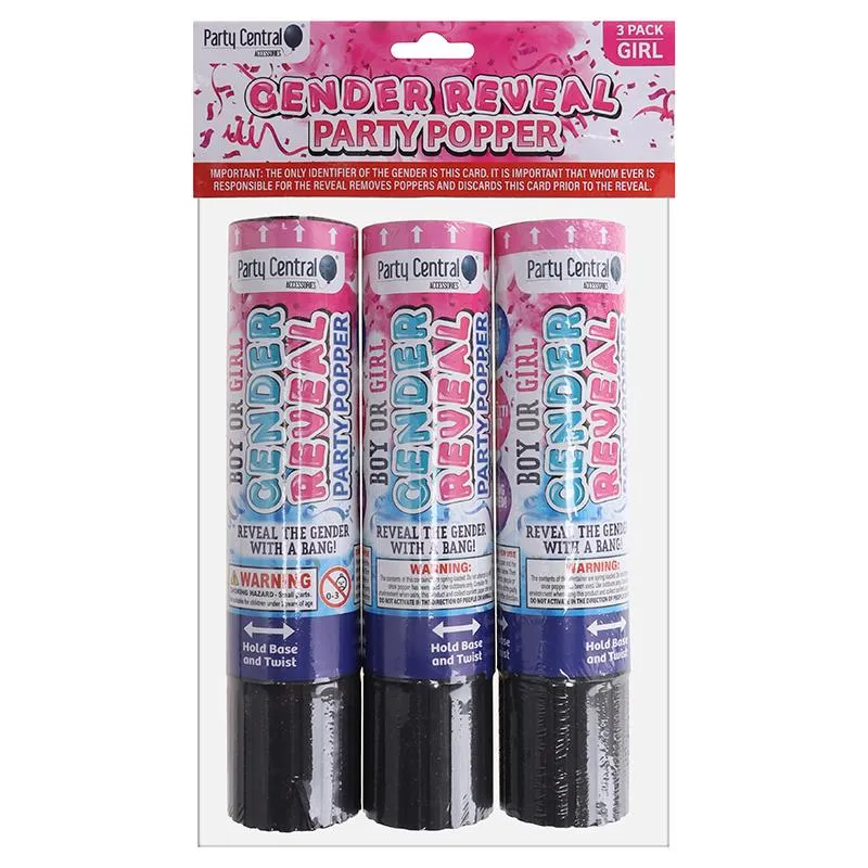 Turn anticipation into a picture-perfect moment with this 3 pack of 20cm gender reveal party poppers. Spring‑loaded and easy to use — simply hold the base and twist to release a burst of pink or blue confetti paper. Perfect for intimate reveals and photo ops; each pack contains three poppers. Pickup in Perth available for fast collection.