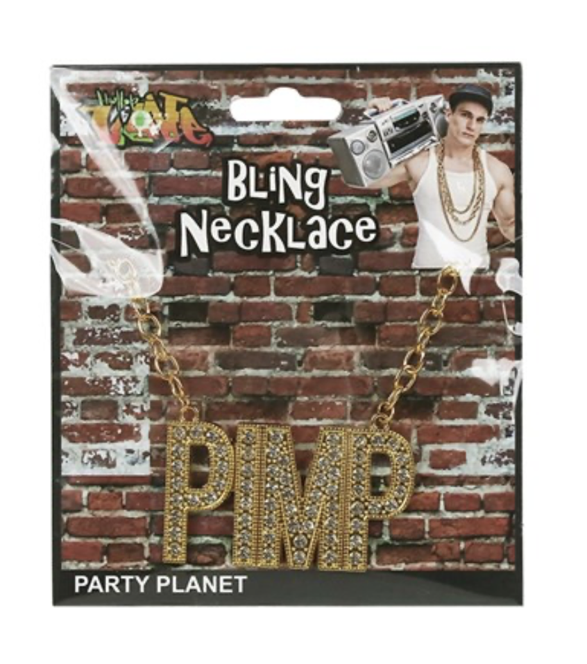 • Includes: 1 x 'PIMP' necklace on a gold‑tone chain