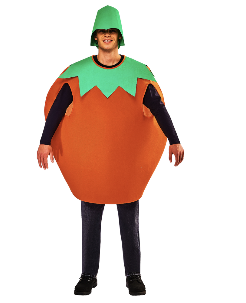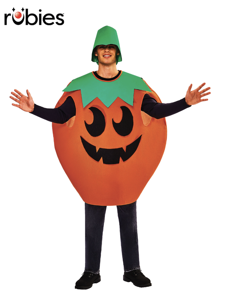 Turn up to your Halloween party as the hit of the patch in this oversized Pumpkin Tabard. One size fits most adults and slips on easily over everyday clothes, with arm cut-outs for quick movement and a matching green stem hat. The bold jack‑o'‑lantern face and rounded, padded silhouette give instant character with minimal fuss.