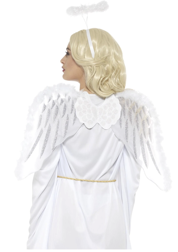 Float into Christmas pageants, Book Week or a heavenly Halloween look with the Pure Angel Set. This white accessory pack adds instant celestial charm with a fluffy halo, feather-trimmed wings and a slim gold rope belt — one size fits most adults. Lightweight and easy to wear, it layers perfectly over robes or dresses for an angelic finish.