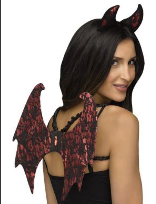 • Includes: Red lace-pattern wings, matching horn headband