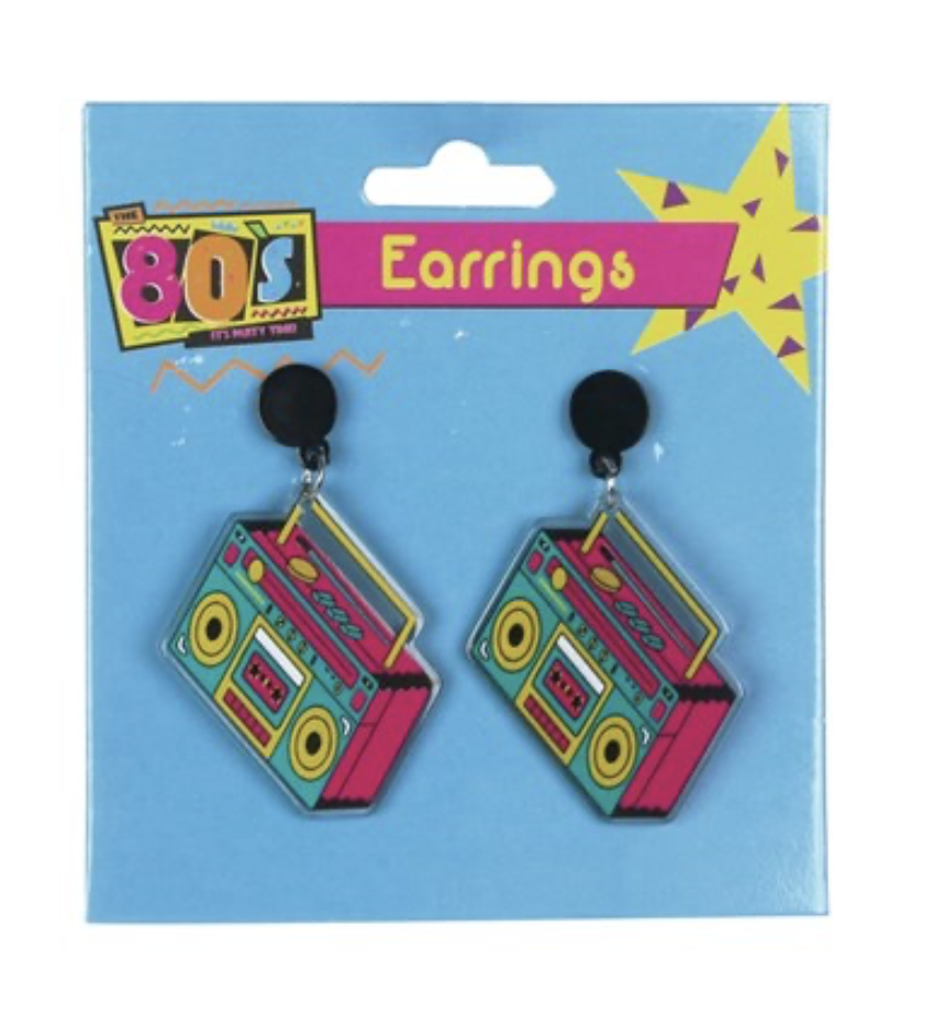 Turn heads at retro nights with these Ghetto Blaster Earrings—bold, colourful miniature boomboxes that swing as you move. Lightweight acrylic charms hang from stud fittings for a dramatic yet comfortable statement; sold as a pair and One size. Perfect for 80s parties, themed nights or adding instant vintage fun to casual outfits. Pickup in Perth available for local customers.