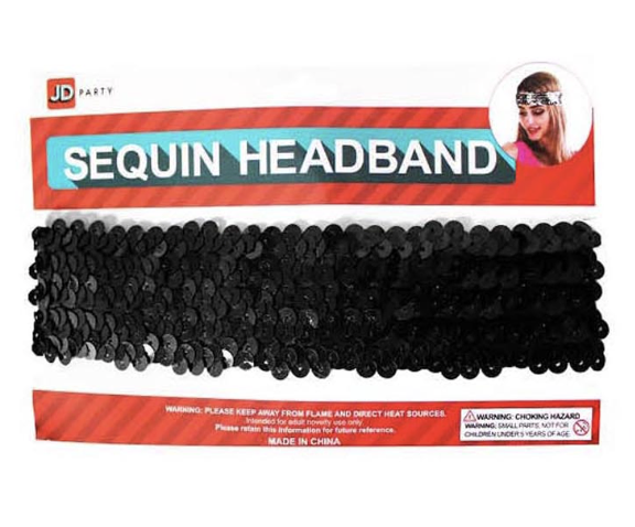 Shimmer through the night with this black sequin headband — perfect for 1920s party looks, dance nights or adding instant sparkle to any costume. The large, one-size headband stretches to fit most adults comfortably and holds hair in place while catching the light. Lightweight and flexible, it’s a simple way to stand out. Available for pickup in Perth.