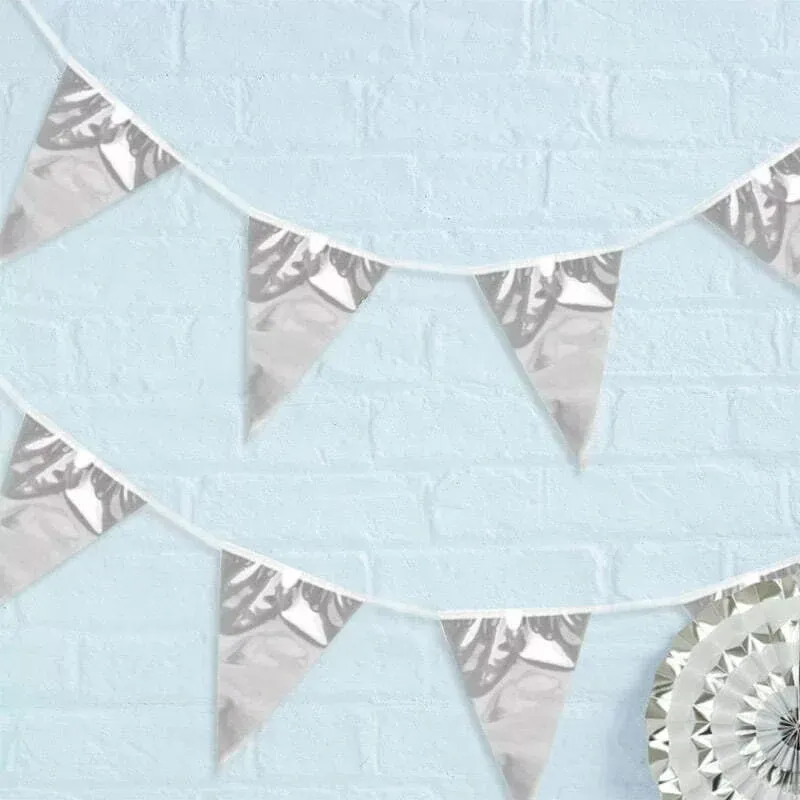 Shimmering and elegant, this silver PET bunting adds a touch of glamour to weddings, parties, and special events.